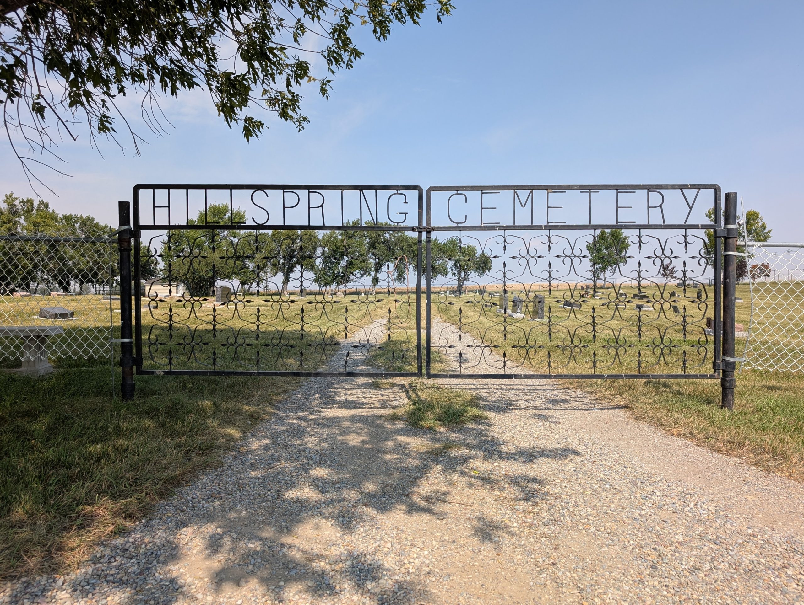 Hill Spring is serviced by two cemeteries, Hill Spring Cemetery and Hill Spring Pioneer Cemetery, located about 2.5 km apart from each other and just north of the village. As of 2022, Hill Spring Cemetery recoded 427 interments and Hill Spring Pioneer 68.